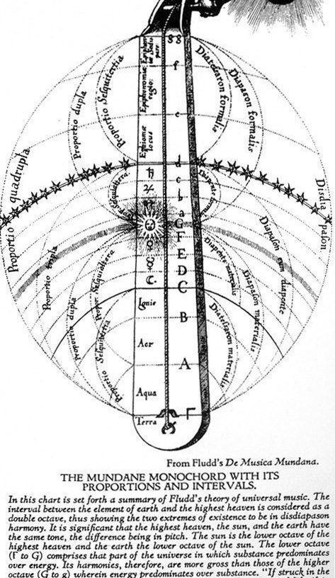 毕达哥拉斯相信行星和所有的天体的轨道和彼此的距离会发出振动的音符,人类只是缺乏听到这些“天体音乐”的能力,他称之为“天体和音”。
